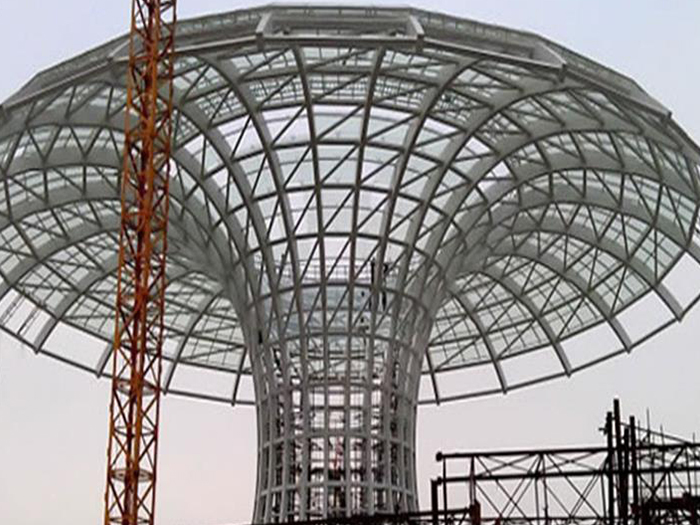 二、球形网架结构因其结构新颖,受力合理,自重轻、用钢量低等优点。如大型体育场馆球形韩城螺栓球网架、公共场馆球形网架、电厂韩城螺栓球网架、水泥工业球形网架、仓储物流球形网架、韩城干煤棚工业球形网架、韩城收费站韩城加油站球形网架、展览中心、影剧院、商场、航站楼、候车厅、工厂韩城车间、仓库、电视塔等球形螺栓球节点网架。国内球形网架结构主要分为:韩城焊接球节点网架及螺栓球节点网架两种。螺栓球节点网架其构件工厂内加工量较大,现场安装便捷,适用于现场工期紧,韩城施工条件、用电量受制约,网架形状复杂、韩城杆件定位困难的异形结构。螺栓球节点球形网架系统基本由韩城杆件、螺栓球、支撑支座等组成。按照节点形式可分为交叉韩城桁架体系、四角锥体系、三角锥体系等。支撑方式多为固定支座支撑。对于大面积、大跨度及有特殊受力或伸缩要求的网架结构可采用橡胶支座、滑移支座、球铰支座等支撑形式,以满足结构自身的受力稳定、均衡,便于内力释放等设计要求。
